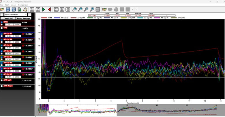 Introducing the new RACE 8 Channel CAN bus wideband oxygen sensor system designed and manufactured by OberBuilt Inc.  This system makes installing eight wideband oxygen sensors for individual cylinder monitoring a breeze. RACE programs the unit and terminates the CAN bus cable so the unit is plug and play with Holley EFI systems.  The indivdual AFR readings are fed into your Holley EFI ECU allowing you to datalog them, use them in advanced tables, or other powerful uses.  The unit supports either Walker/NTK part number 250-25001 (has 1 foot pigtail length) or Bosch 4.9 sensors (PN 17025 is recommended with it’s 3 foot length).  The unit includes the wide band controller, fully terminated 02 sensor harnesses, and terminated CAN bus/switched power harness.  The 02 harness total length is 6 foot in all kits (harness plus sensor).  During checkout, you can choose which AFR units you would like programmed : for Gas (stoichiometric is 14.7:1), E85 (stoichiometric is 9.7:1) , Methanol (stoichiometric is 6.4:1), or lambda.
